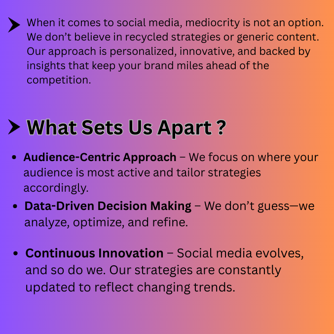 We believe in transparency, creativity, and data-backed decisions. Our team of experienced marketers, designers, and strategists work hand-in-hand with you to turn your goals into reality. At the heart of everything we do is one goal: to help you grow smarter and faster.